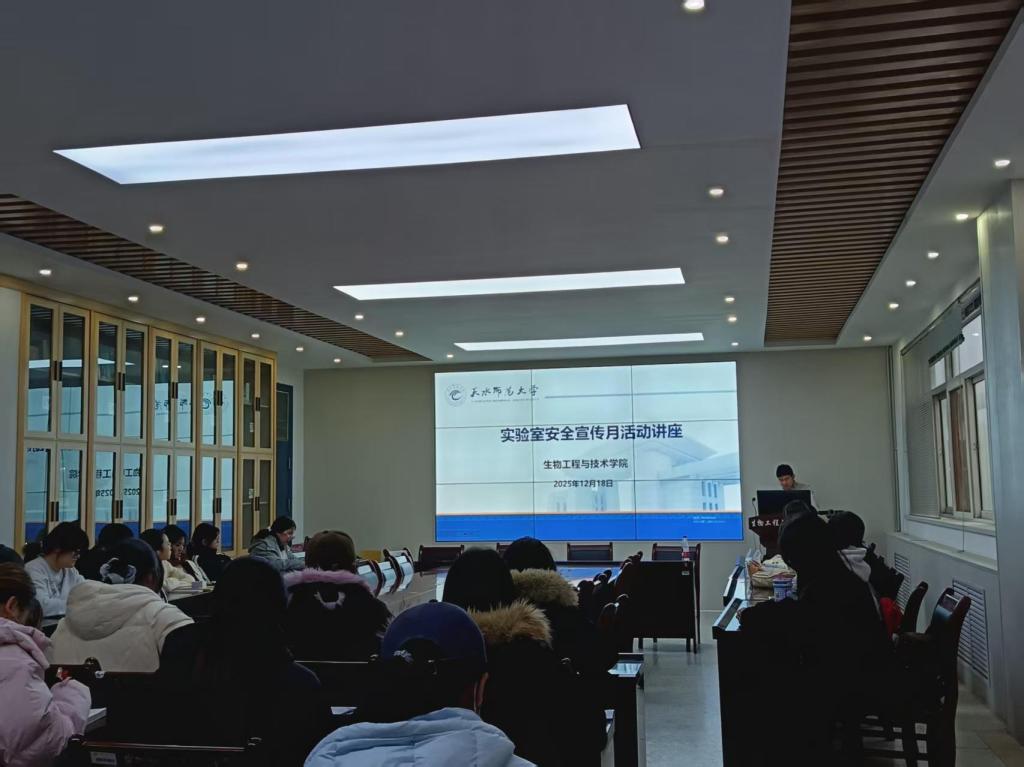 当天上午,在3号实验楼414会议室举办了“实验室安全应急教育”专题讲座。王玉同老师围绕实验室常见安全隐患、化学品规范管理、个人防护要点、应急处理流程等内容展开,结合高校实验室真实案例进行深入剖析,详细讲解了实验操作规范、危险源辨识及事故预防措施,并强调了安全责任意识与安全文化养成的重要性。讲座过程中,师生积极互动,针对日常实验中遇到的问题进行了咨询与交流,进一步巩固了安全知识。