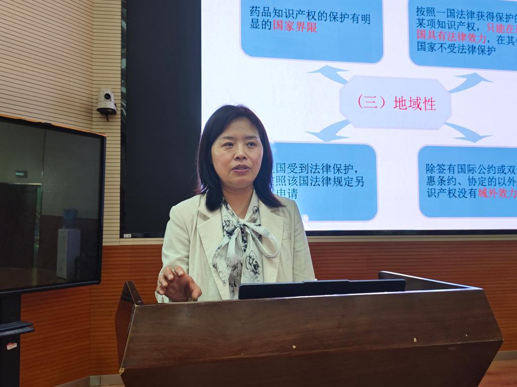 讲座中,刘东玲教授结合自身丰富的科研实践与专利申报经验,深入浅出地阐述了医药知识产权在驱动创新、保护成果中的核心作用。她通过生动案例,讲解了从科研选题到成果转化的全过程中如何强化知识产权布局意识,为在座师生提供了极具价值的指导。