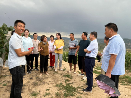在新五虎优选合作联社种植基地,调研人员详细考查了该基地葡萄和苹果生长情况,并对新引进的16个葡萄名优品种和6个苹果新品种的生长情况果实的品相口感以及未来市场走向做了全面、详细、客观的分析和评价。呼丽萍研究员强调,新品种的引进和本土适应性表现非常重要,在引进新品种前,一定要做足功课,详细考查品种抗冻、抗旱、抗病性与适应性,以及栽培技术的简易程度,再辅助精细化的果园管理措施,能栽培出“好吃、好看、好管、好卖”的果实,达到事半功倍的效果。在麦积区裕盛种植家庭农场、杰盛种植家庭农场和中滩镇天水佑达农业开发有限公司种植基地,调研人员对三个基地的果园管理给予高度评价,并提供了相关栽培技术指导和建议。