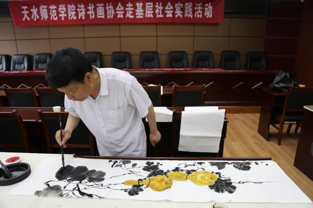 考察期间,公司邀请的天水市书画协会艺术家们现场泼墨,为林场职工赠送了精美的书法和绘画作品,受到林场职工的热烈欢迎。